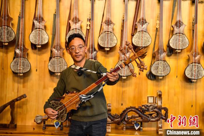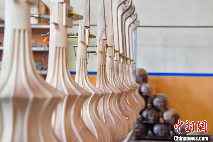 6月14日,記者走進西藏自治區(qū)日喀則市拉孜縣熱薩鄉(xiāng),探訪中國國家級非物質(zhì)文化遺產(chǎn)“扎念琴制作技藝”的具體制作過程。扎念琴,又名六弦琴,是西藏傳統(tǒng)歌舞“堆諧”中最常用的彈撥樂器。扎念,藏語意為“悅耳動聽之聲”。在西藏,扎念琴深受廣大群眾喜愛。2014年,“扎念琴制作技藝”入選第四批中國國家級非物質(zhì)文化遺產(chǎn)代表性項目名錄。據(jù)了解,扎念琴制作共有5道基本程序:第一步,將整根木材掏空,做成共鳴箱;第二步,制作中間空心的琴桿,裝上名為“卡杺”的面板;第三步,雕刻“馬頭”或“龍頭”形狀的琴頭,安裝在琴桿頂部;第四步,制作附在琴頭、呈半圓形、向后彎曲且中間開有弦槽的扎念弦軸。最后一步,挑選羊腸、牛筋、絲線等不同材料來制作琴弦。扎念琴制作技藝的特別之處在于,為了琴身的美觀,初制后還要通過雕刻馬頭、龍頭、火焰等形狀作為裝飾,讓扎念琴更具特色。圖為制作完成的扎念琴。貢確 攝