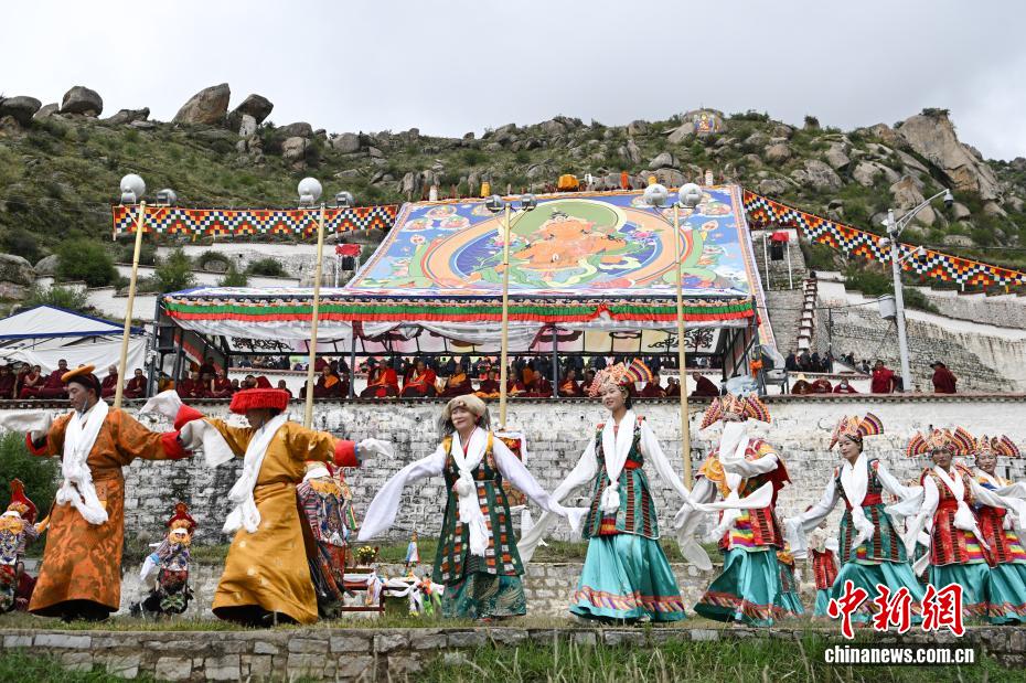 8月23日,西藏拉薩哲蚌寺舉行展佛活動,展出巨幅強(qiáng)巴佛(藏傳佛教三世佛中的未來佛)唐卡,眾多信眾以及游客前往哲蚌寺朝佛,拉薩一年一度的雪頓節(jié)正式拉開帷幕。