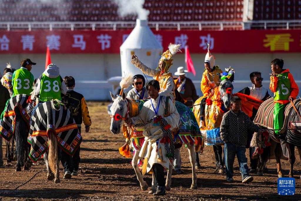 9月6日,在恰青賽馬節(jié)比賽現(xiàn)場(chǎng),騎手們?cè)诘群虮荣愰_(kāi)始。新華社記者 丁增尼達(dá) 攝