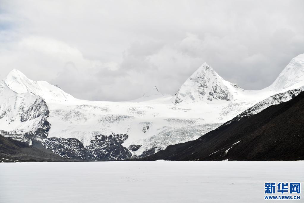 這是5月4日拍攝的薩普雪山和雪山腳下的冰湖(無人機(jī)照片)。新華社記者 孫瑞博 攝