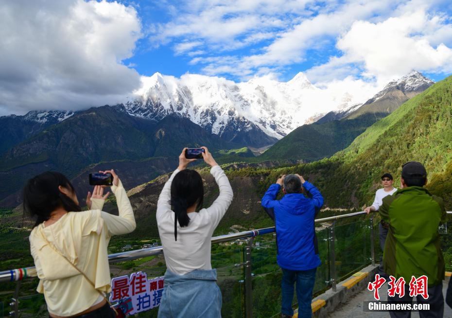 圖為游客在大峽谷觀景臺(tái)拍攝南迦巴瓦峰美景。 貢嘎來(lái)松 攝