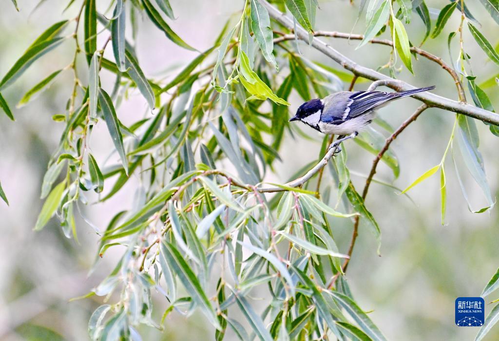 在拉薩市一家單位的院內(nèi),一只小鳥落在枝頭(8月15日攝)。新華社記者 張汝鋒 攝
