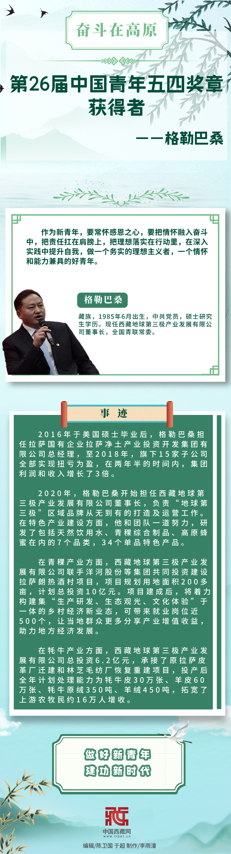 長圖|【奮斗在高原】第26屆中國青年五四獎章獲得者——格勒巴桑