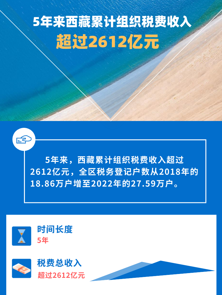 5年來,西藏累計組織稅費收入超過2612億元,全區(qū)稅務(wù)登記戶數(shù)從2018年的18.86萬戶增至2022年的27.59萬戶。 [詳細(xì)] -