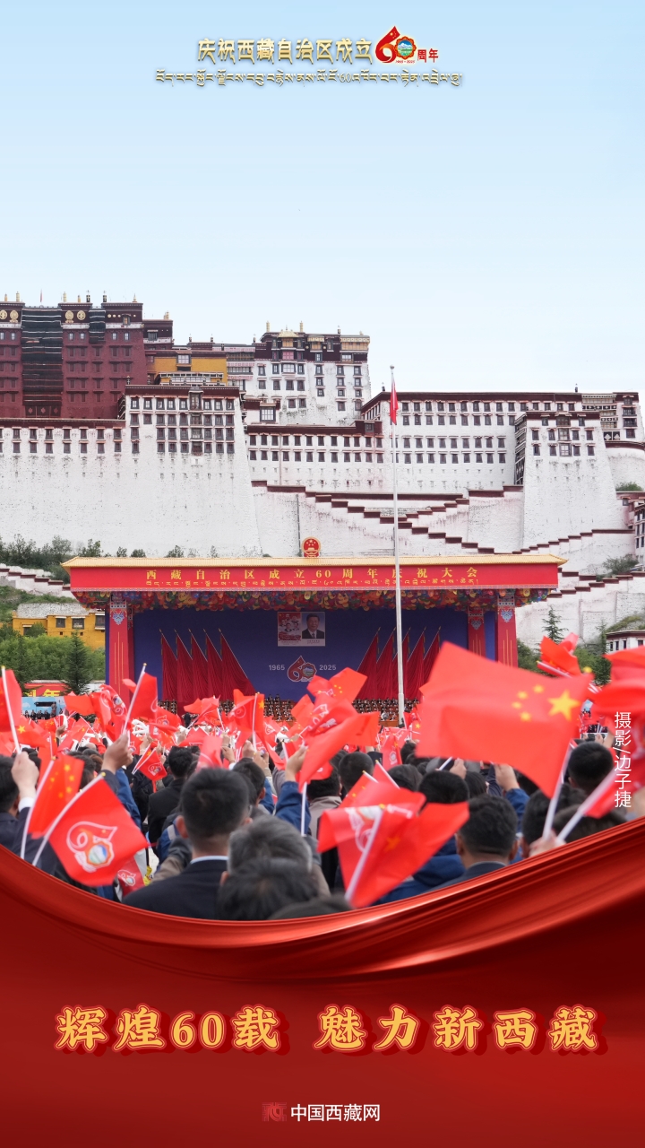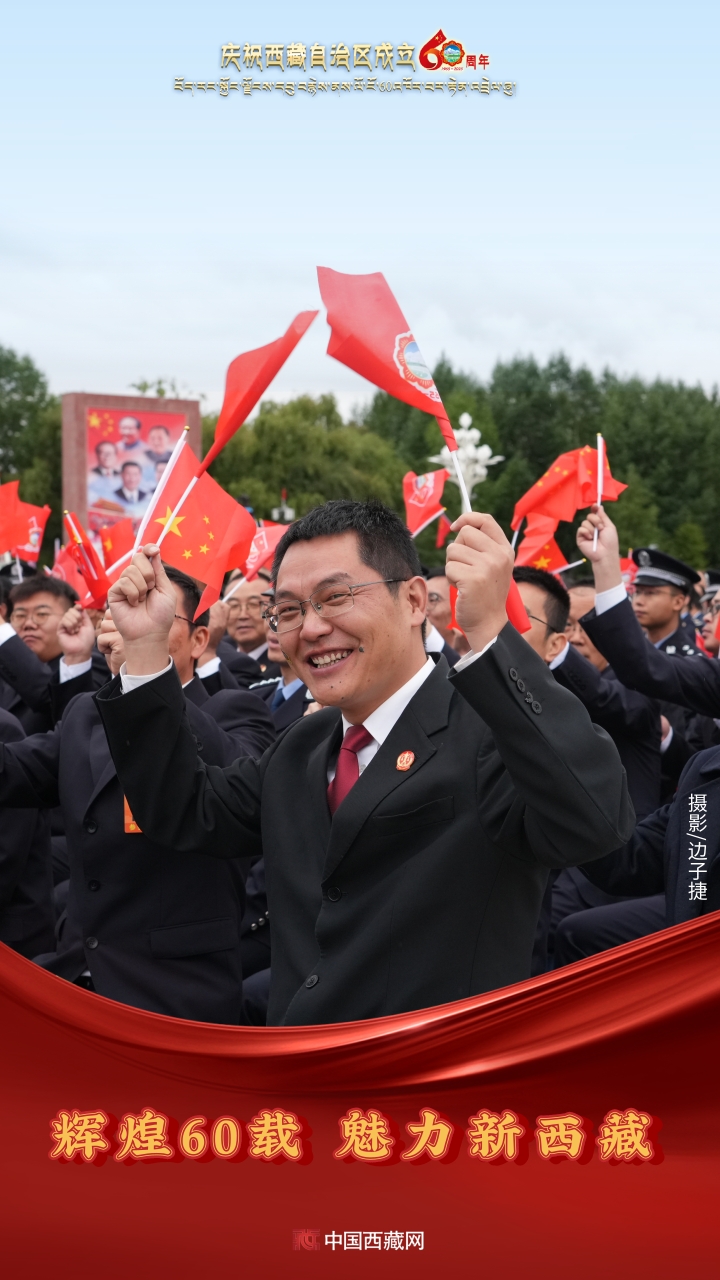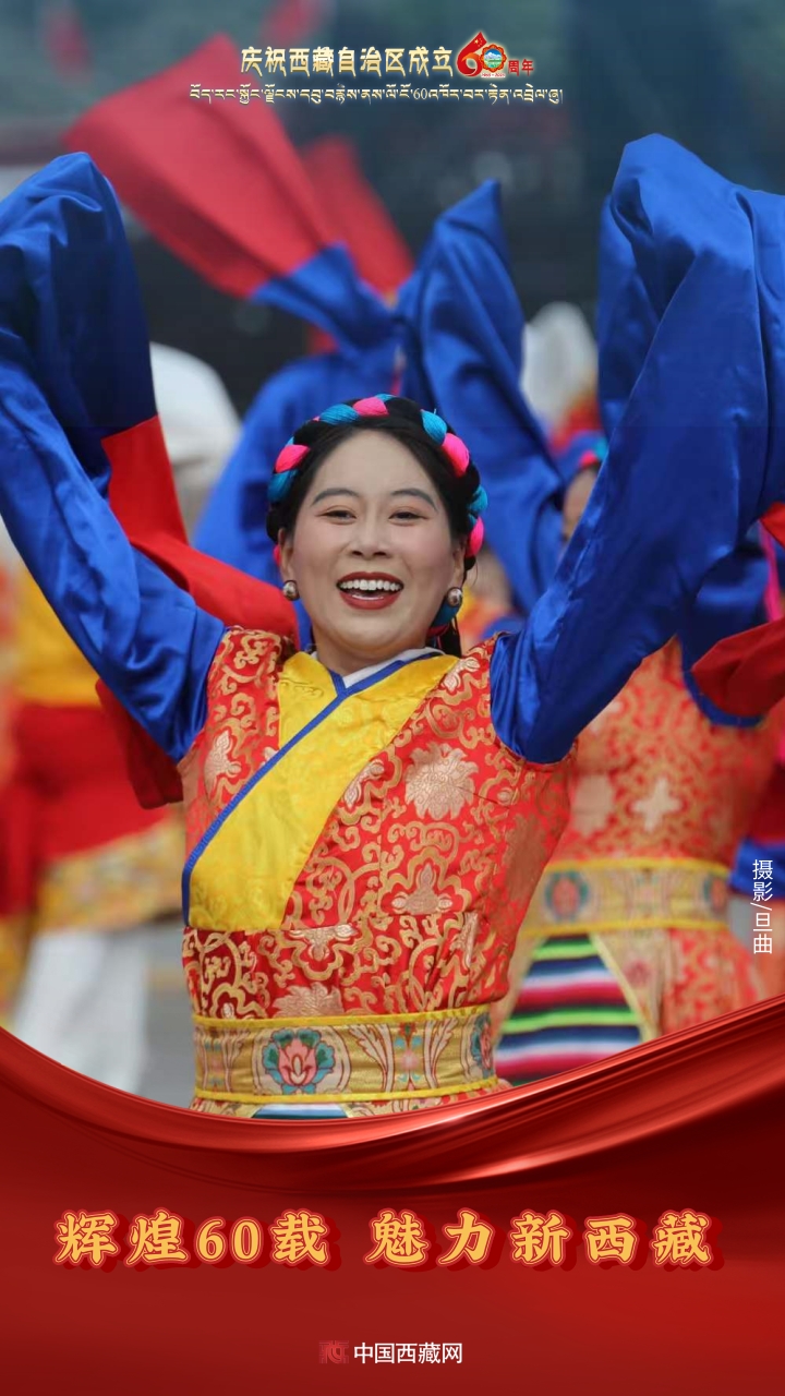 六十年風(fēng)雨兼程,六十年春華秋實(shí),都在這一刻化作人們真摯的笑容與熱烈的歡呼。讓我們祝福祖國!祝西藏自治區(qū)繁榮昌盛,祝西藏各族人民幸福安康?。ㄖ袊鞑鼐W(wǎng)攝影/邊子捷 旦曲 趙振宇 制作/王茜)
