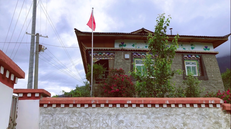 據(jù)色果拉村村支書介紹,色果拉村居民喜愛把鮮艷的五星紅旗插在屋頂,以往由于風沙大,經(jīng)常把插在屋頂?shù)膰齑低幔谑谴迕褡园l(fā)在每家每戶門前修建了升旗臺,每到國慶、“七一”等重大節(jié)日,都會舉行升旗儀式。另外,村委會有專門的舊國旗回收箱,用來收納村民家里的舊國旗,村民上交舊國旗可以換取新的國旗。