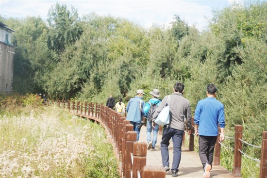 9月初,濕地里的花草樹木從夏天的翠綠到初秋的泛黃,成為了拉魯濕地另一番美景?!∪藗?cè)诓叫衅溟g,呼吸著充足的氧氣,情緒高漲,邁開(kāi)輕快而有力的步伐,沿著拉魯濕地步道健步前行,時(shí)而駐足觀望沿途美景,時(shí)而聚集一方合影留念,不僅鍛煉了身體,又領(lǐng)略了自然風(fēng)光,也陶冶了情操。