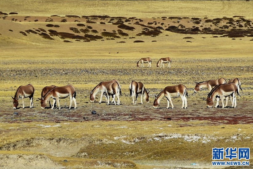 阿里境內(nèi)的藏野驢(10月13日攝)。新華網(wǎng) 張宸 攝