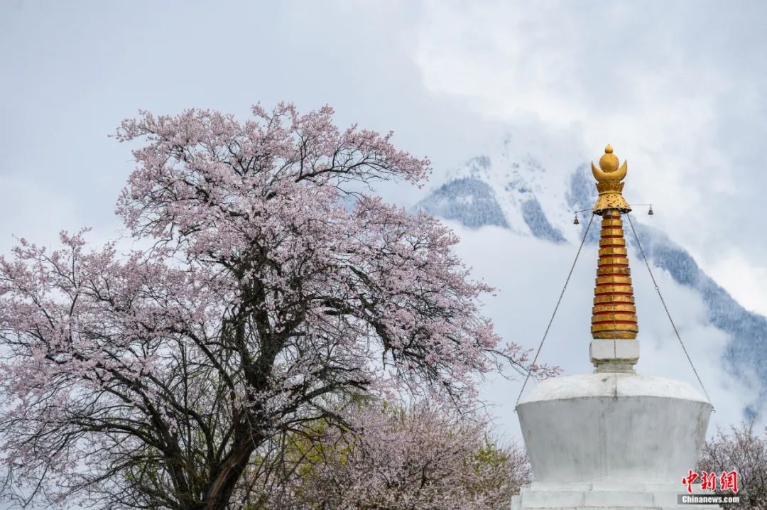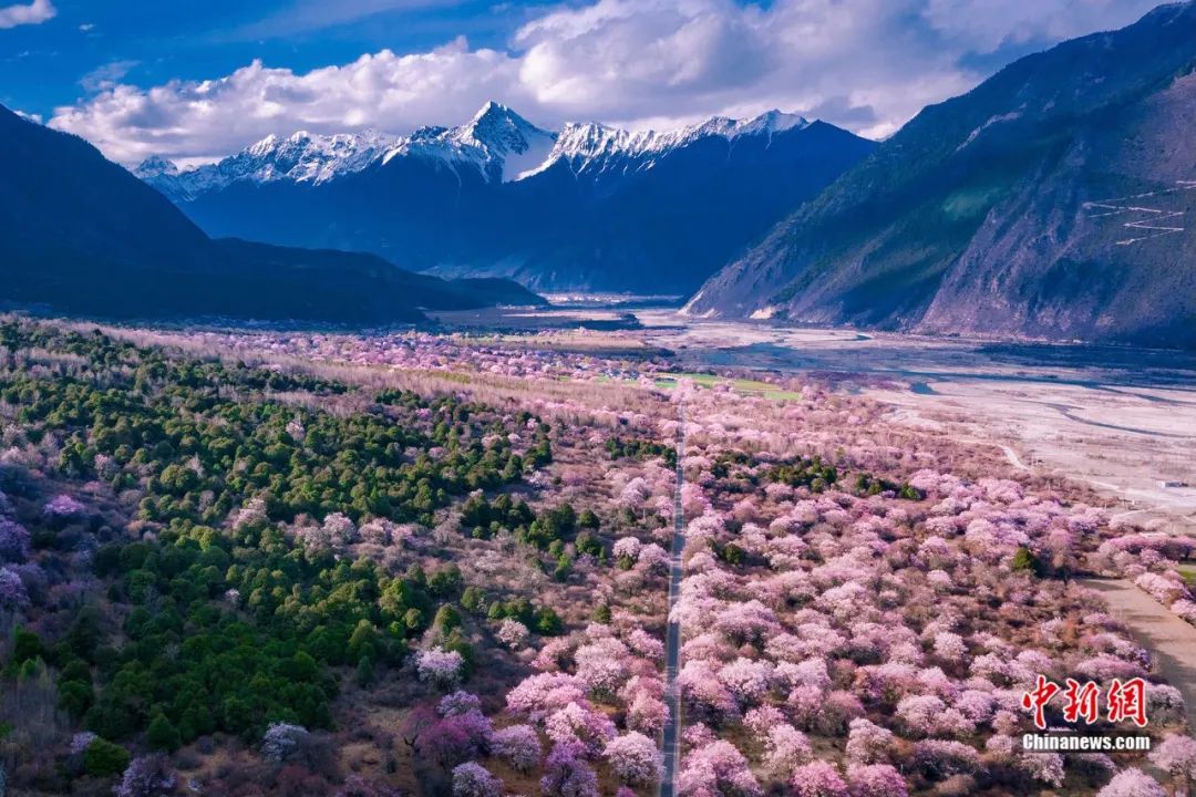 每年三、四月間,東起波密縣,經(jīng)巴宜區(qū),米林縣,西至工布江達縣,朗縣,田野間,江河畔,村舍旁,千年古桃樹樹干遒勁,樹高花繁,千山萬壑花開成海,是望不盡的百里桃花。