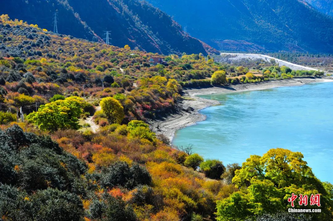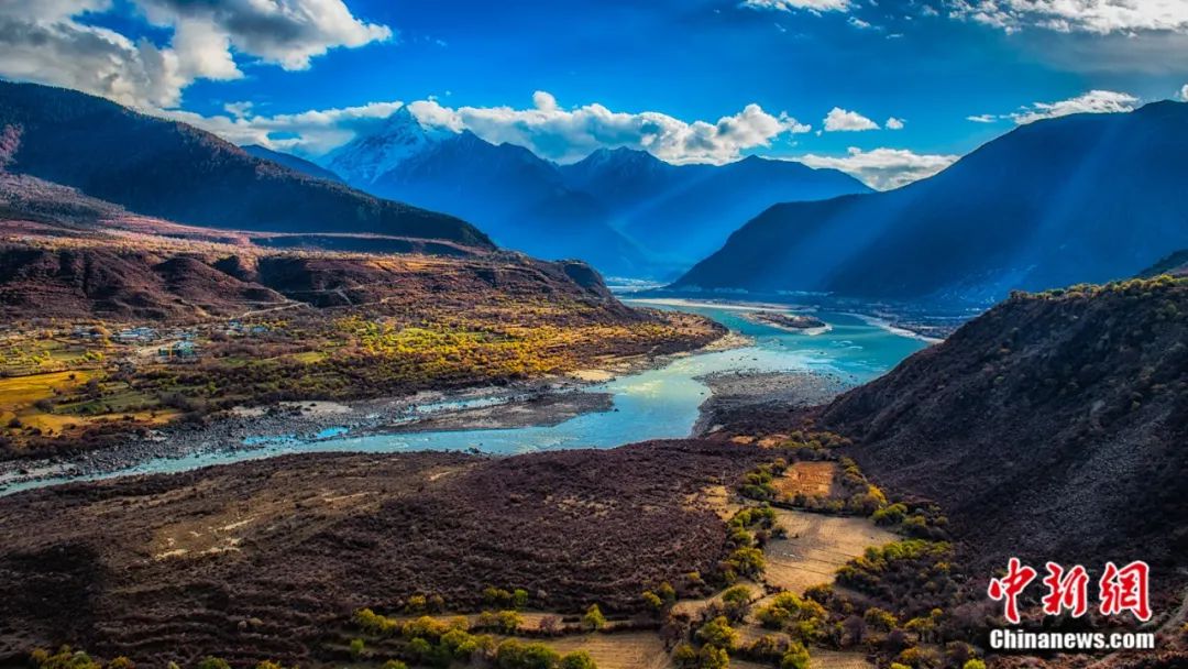 時值秋末冬初,全長504.6公里,最深處6009米的雅魯藏布大峽谷呈現(xiàn)出別樣巍峨壯觀,兩岸五彩交織的森林上雪峰林立,谷底奔涌的雅魯藏布江碧水繞田,宛若童話中的仙境。