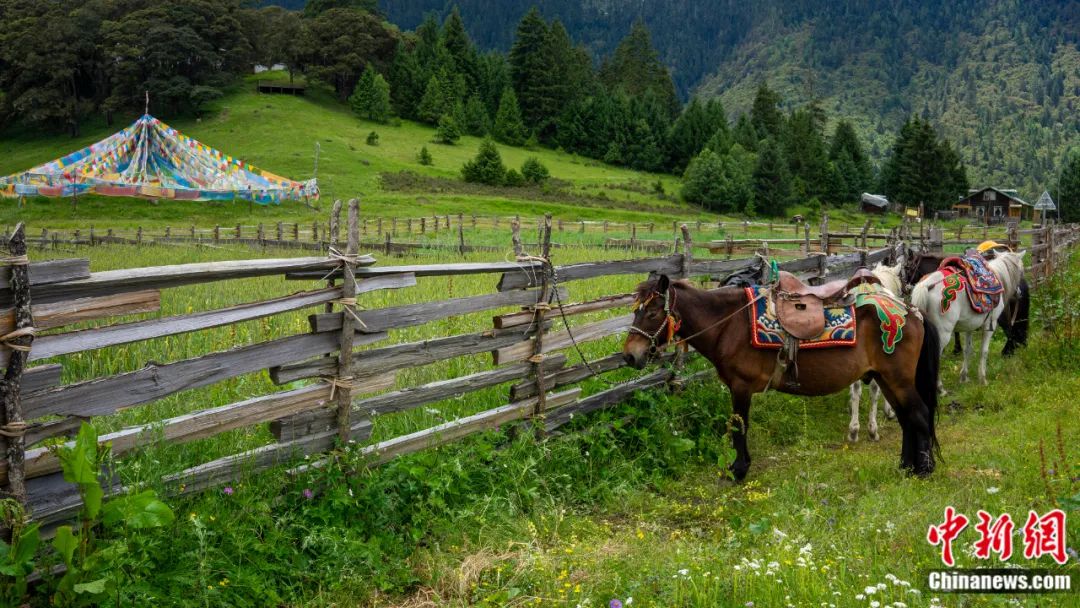 同時,藏式農(nóng)家樂、民宿仍由魯朗當(dāng)?shù)卮迕窠?jīng)營,在特色民俗村扎西崗村,民居、牧場、田園保留了原汁原味的藏族特色,形成了浮云繞林海、林海圍田園、花海擁村落的別樣場景。