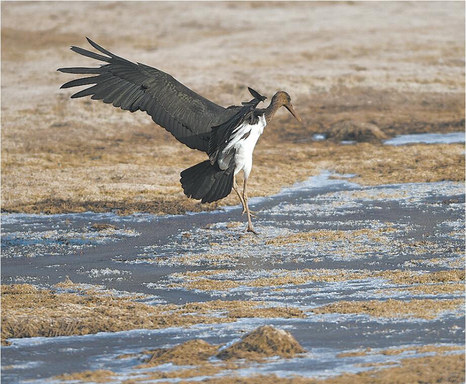 黑鸛現(xiàn)身青海西寧