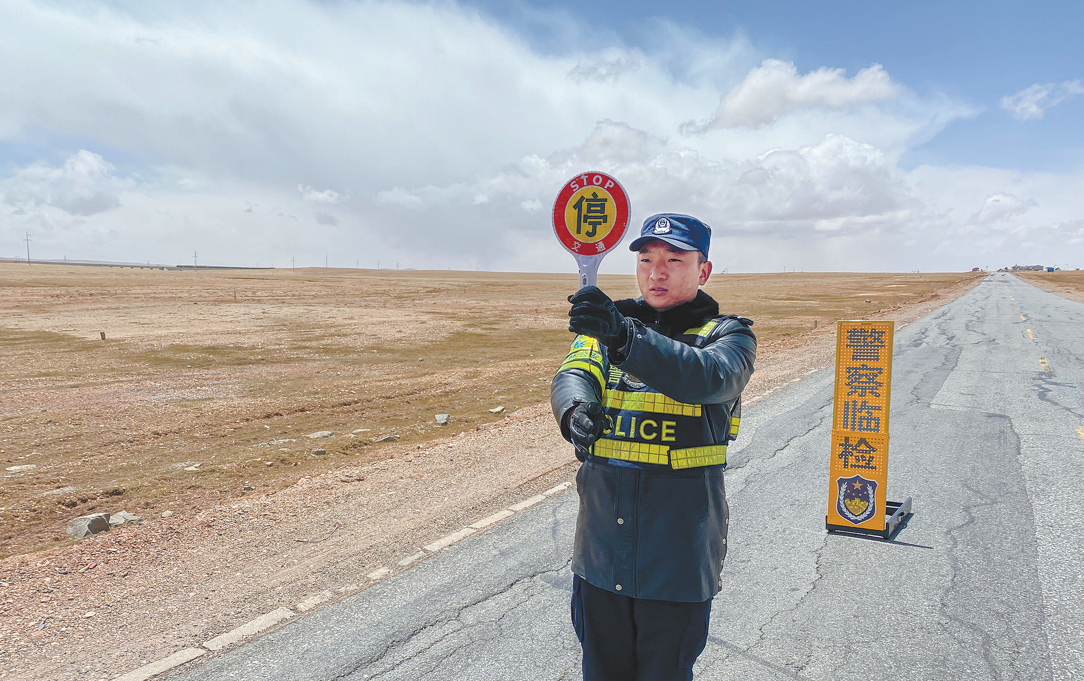 盼望著、盼望著,終于,激動人心的時刻到了,為藏羚羊保駕護航的工作正式開展。但這跟我想象中“英雄”的場景差別很大,沒有什么讓人熱血沸騰的大場面,每天的工作就是站在外面,加強青藏公路藏羚羊遷徙通道巡護,及時為穿越公路的藏羚羊群臨時管制交通。
