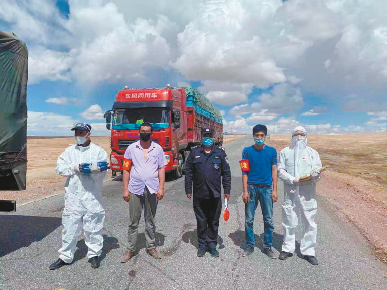 五道梁保護站的隊員們攔住過往車輛,為前往卓乃湖產(chǎn)仔的藏羚羊打開生命通道。