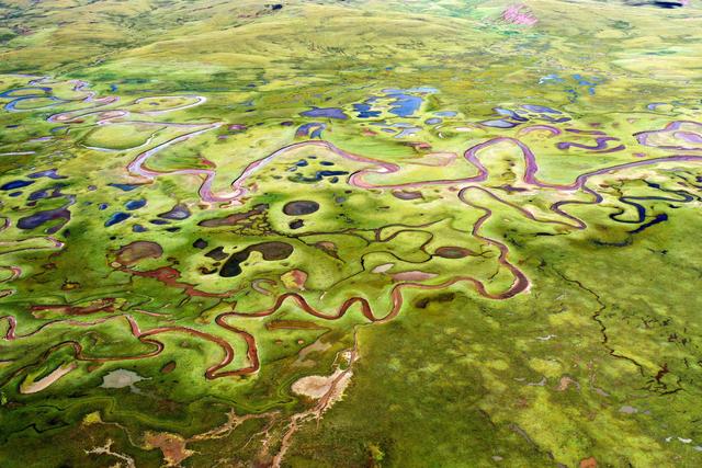 在西藏昌都市貢覺(jué)縣拉妥鄉(xiāng)拍攝的拉妥濕地(9月28日攝,無(wú)人機(jī)照片)。新華社記者 詹彥 攝