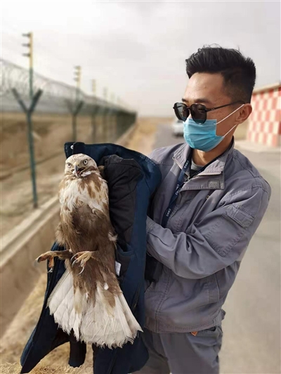日前,一只受傷的大鵟因體力不支不慎“降落”西寧機場飛行區(qū),正當它無助之時,被青海機場公司的驅(qū)鳥員發(fā)現(xiàn),最終在驅(qū)鳥員的救助下,受傷的大鵟被移交至青海野生動物救護中心(西寧野生動物園)進行治療。