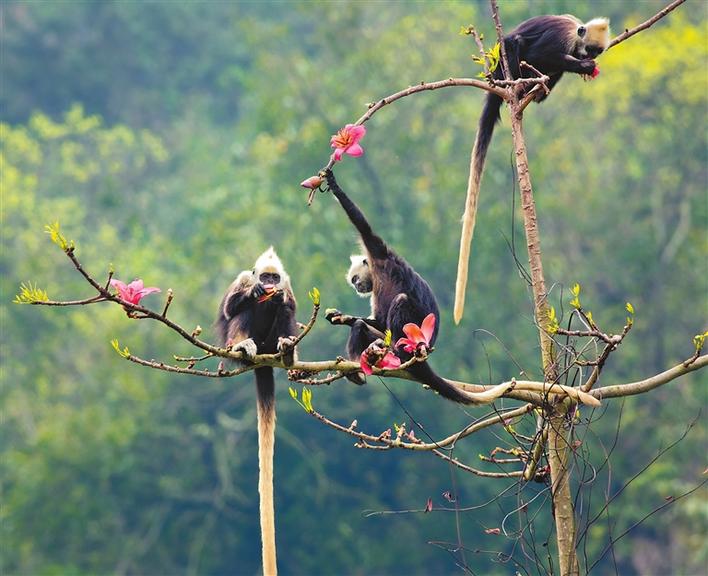 在廣西崇左白頭葉猴國(guó)家級(jí)自然保護(hù)區(qū)拍攝的白頭葉猴(資料照片)。新華社發(fā) (廣西崇左白頭葉猴國(guó)家級(jí)自然保護(hù)區(qū)提供)