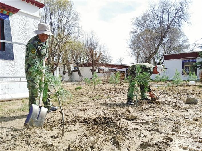 羅布林卡管理處園林科工作人員進(jìn)行苗木補(bǔ)栽。記者 央金卓瑪 攝