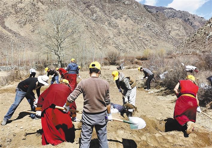 日前,加查縣瓊果杰寺管會以“助力春耕生產(chǎn),共建美麗家園”為主題,組織寺管會工作人員和僧人赴加查鎮(zhèn)扎西定崗村與群眾一起進(jìn)行春耕生產(chǎn)。