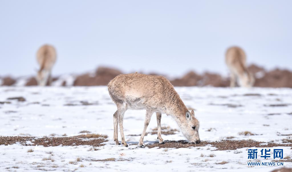 4月20日,藏羚羊在三江源可可西里地區(qū)活動(dòng)。新華社記者 吳剛 攝