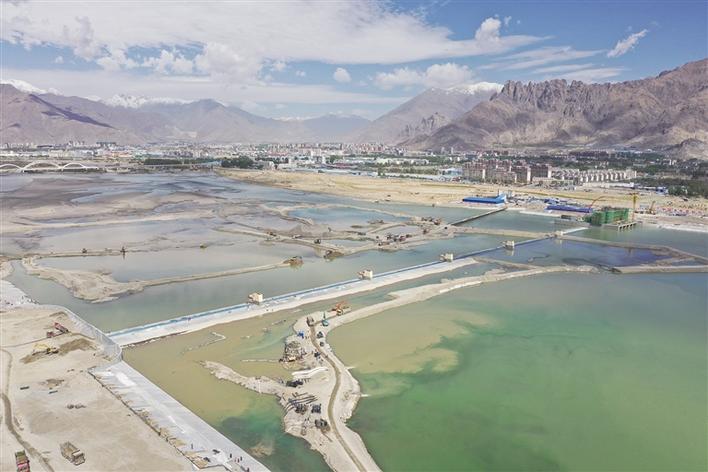 拉薩河河勢控導(dǎo)工程(濱江花園段)工程技術(shù)部主任劉誠介紹,拉薩河河勢控導(dǎo)工程(濱江花園段)由中國水電基礎(chǔ)局承建,總投資4.4億元,壩址位于拉薩河城區(qū)段。該工程于2020年5月25日進行開工準(zhǔn)備,9月2日正式開始主體工程施工任務(wù)。工程屬于拉薩河城區(qū)段自下而上的第一座攔河蓄水建筑物,位于2#閘下游約1.635千米。工程包括氣盾壩、調(diào)節(jié)閘、導(dǎo)流墻、魚道和充排氣泵房等部分。