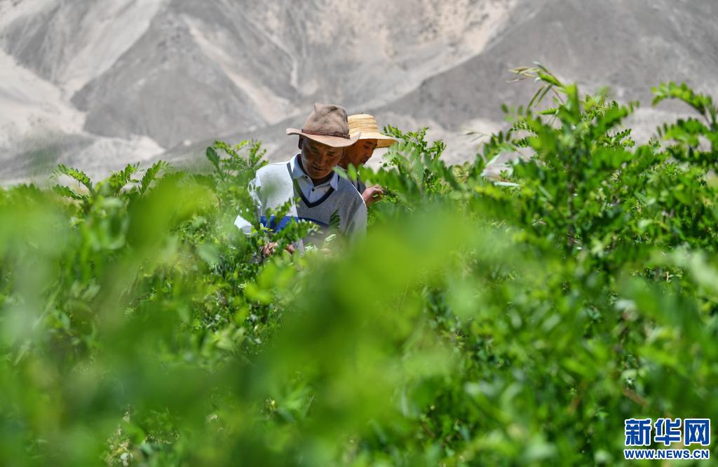 山南市貢嘎縣吉雄鎮(zhèn)劉瓊村村民在檢查樹(shù)苗生長(zhǎng)情況(6月2日攝)。新華社記者 晉美多吉 攝