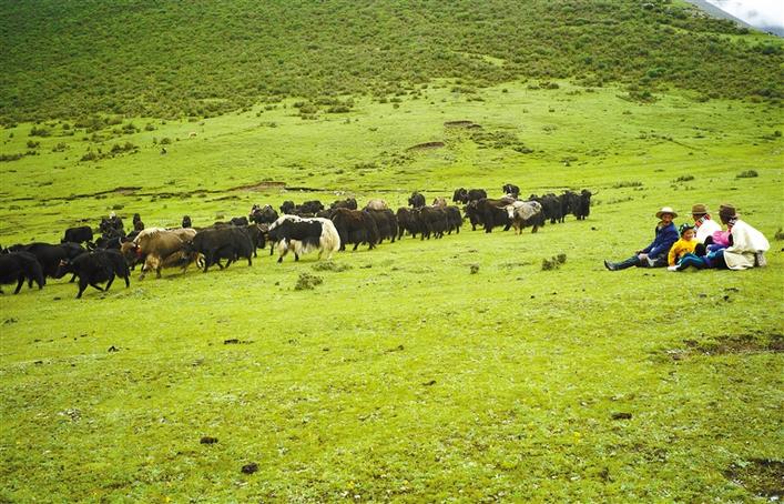 圖為墨竹工卡縣斯布鄉(xiāng)牧民在斯布溝牧場放牧。記者 格桑吉美 攝
