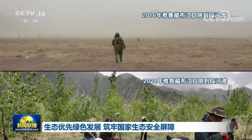 雅魯藏布江是我國最長的高原河流,也被譽為西藏人民的“母親河”。而受到高原氣候、地質(zhì)等環(huán)境影響,雅江流域曾出現(xiàn)過河灘荒漠化的情況。眼前這兩張照片拍攝于雅江上游河灘的同一位置,五年的時間,荒漠變成森林,讓拍攝者次仁歐珠感慨不已。