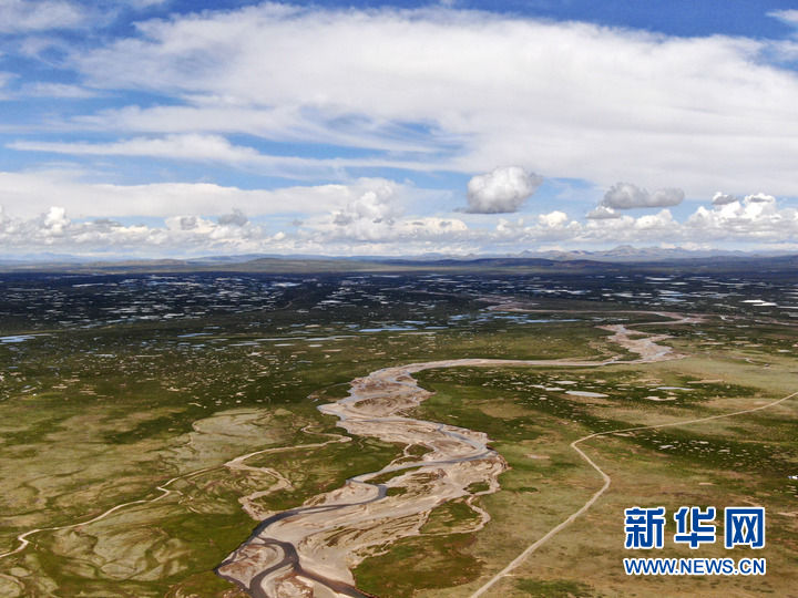 這是7月23日拍攝的長(zhǎng)江源地區(qū)的查旦濕地(無(wú)人機(jī)照片)。新華社記者 張龍 攝