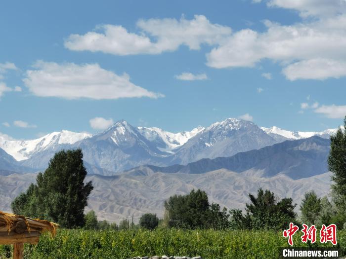 7月下旬,酒泉市肅州區(qū)祁連山覆蓋白雪與藍(lán)天白云相映成趣。(資料圖) 張婧 攝