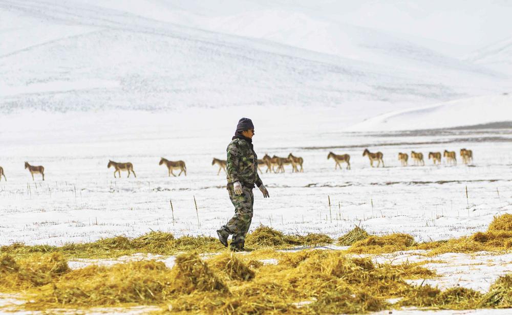 從戴上紅袖章那天開始,他就穿梭在山林、湖畔、河邊,有時撿拾垃圾,有時關(guān)注野生動物的蹤跡,默默守護這片家鄉(xiāng)的草場、湖泊、高山。在一次巡護中,切保和隊友們發(fā)現(xiàn)由于季節(jié)的變化,導(dǎo)致黑頸鶴等野生動物的巢穴被淹,給它們的生產(chǎn)棲息帶來了影響。于是,他和其他生態(tài)管護員為黑頸鶴等野生動物修巢筑窩12個?!安蛔尷廴静輬?、污染動植物的水源地”是每一位管護員的共同想法。