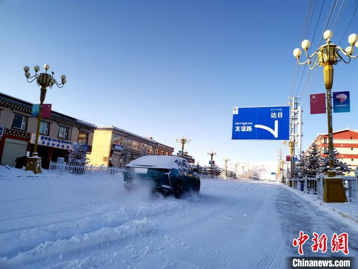 圖為大雪致甘德縣城道路積雪。馬長(zhǎng)云 攝