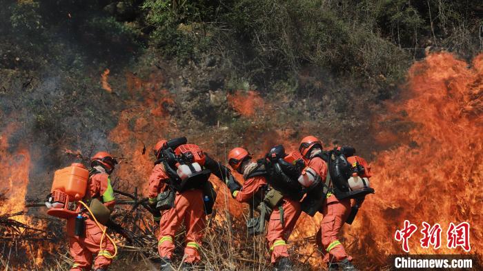 圖為3月2日,云南森林草原火災(zāi)應(yīng)急處置聯(lián)合實戰(zhàn)演練中常規(guī)裝備滅火。 云南省森林消防總隊 攝