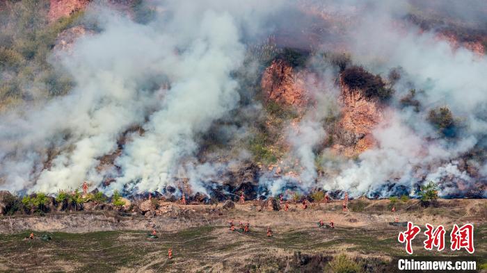 圖為3月2日,云南森林草原火災(zāi)應(yīng)急處置聯(lián)合實戰(zhàn)演練現(xiàn)場?!≡颇鲜∩窒揽傟?攝