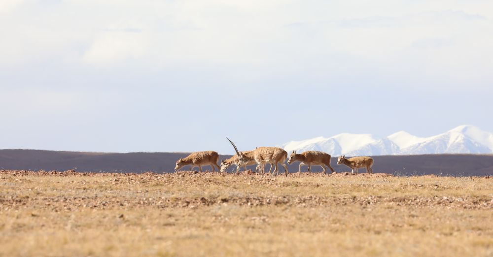 這是2021年9月28日在三江源國(guó)家公園拍攝的五只藏羚羊。新華社記者 李占軼 攝