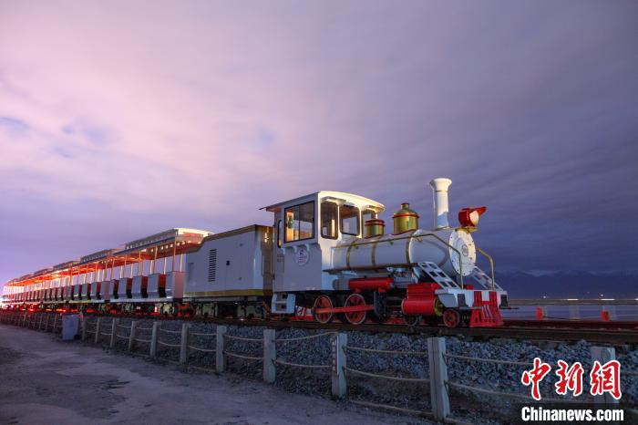 圖為夜色籠罩下茶卡鹽湖的小火車?!?黃丹丹 攝