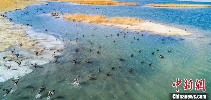 圖為格爾木濕地引無(wú)數(shù)野生鳥(niǎo)類(lèi)棲息?!『螁⒔?攝