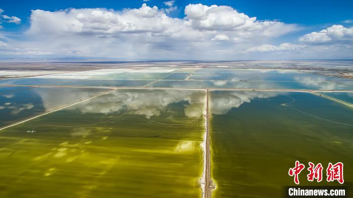 圖為無(wú)人機(jī)航拍格爾木市察爾汗鹽湖?!『螁⒔?攝