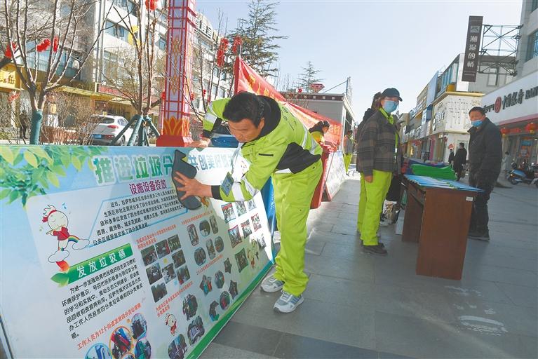 3月14日,西藏各市地紛紛開展春季愛國衛(wèi)生運(yùn)動(dòng),廣大黨員干部群眾走上街頭,參與城市環(huán)境衛(wèi)生清潔。這是拉薩市垃圾分類宣傳活動(dòng)現(xiàn)場。 記者 旦增蘭澤 攝