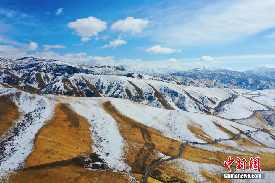 一場春雪過后,青海省海北藏族自治州祁連山國家公園青海片區(qū)群山被白雪覆蓋,云霧繚繞,金色的草場、潔白的羊群和蔚藍(lán)的天空相映成趣,美不勝收。馬銘言 攝
