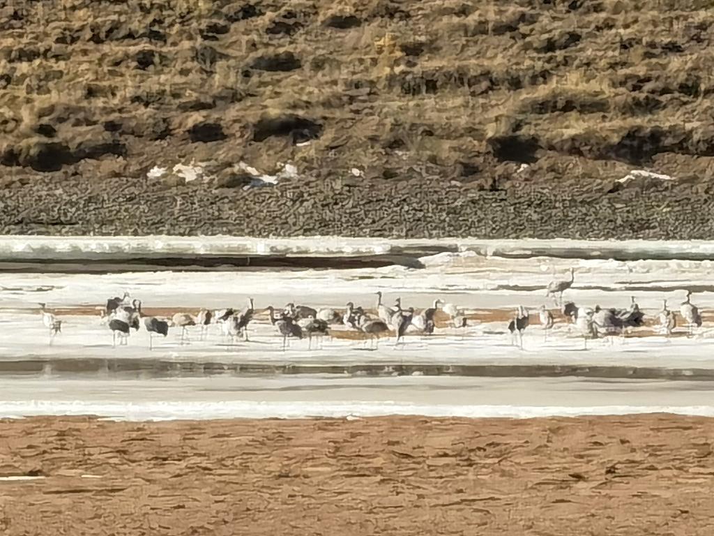經(jīng)鳥(niǎo)類專家確認(rèn),這是遷徙中的蓑羽鶴,它們剛剛飛越喜馬拉雅山,途經(jīng)黃河源,在此短暫休整。