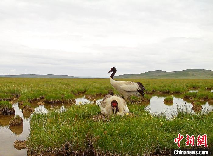 圖為黃河源頭瑪多境內(nèi)濕地的黑鶴?!‖敹嗫h委宣傳部 供圖