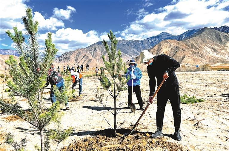 圖為扎囊縣義務(wù)植樹活動(dòng)現(xiàn)場(chǎng)。記者 段敏 攝