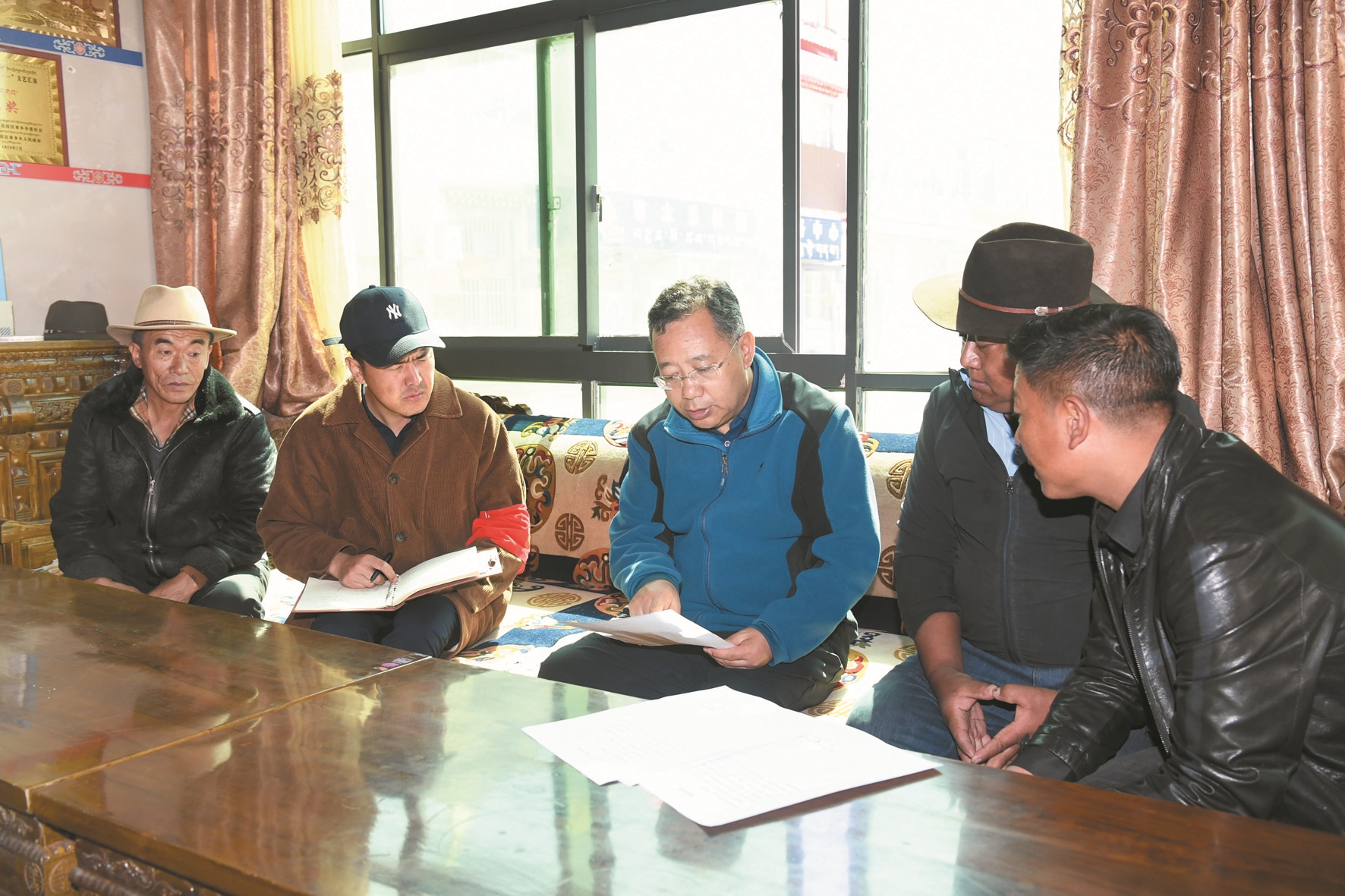 5月5日至6日,西藏自治區(qū)黨委常委、市委書記普布頓珠赴達(dá)孜區(qū)章多鄉(xiāng)、塔杰鄉(xiāng)、德慶鎮(zhèn)、邦堆鄉(xiāng)調(diào)研。圖為普布頓珠在尊木采村村委會了解情況。拉薩融媒記者 平措旺堆攝
