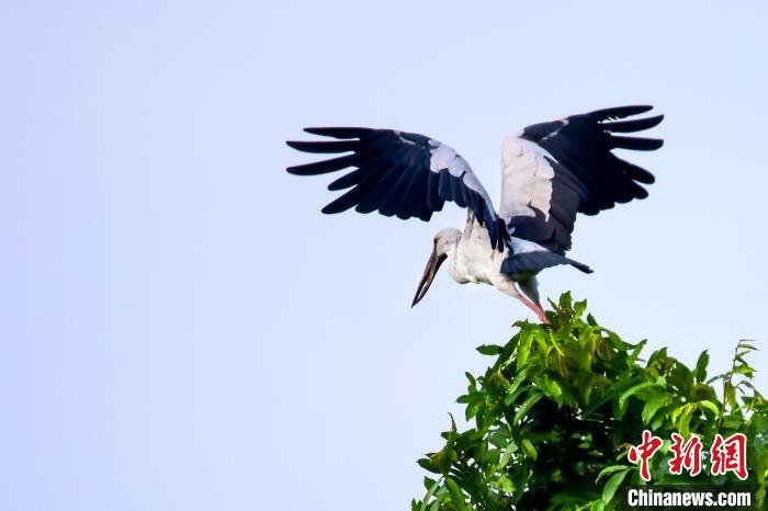 樹(shù)頂上的鉗嘴鸛。 周學(xué)峰 攝