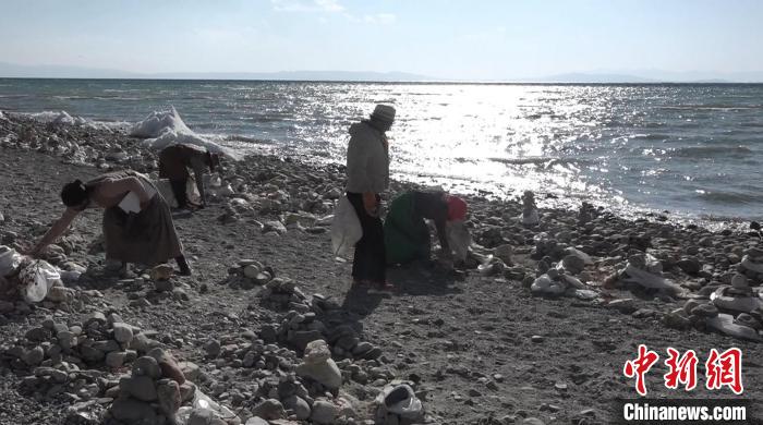 圖為牧民在瑪旁雍錯(cuò)自然保護(hù)區(qū)內(nèi)撿拾垃圾?!∝暽@?攝