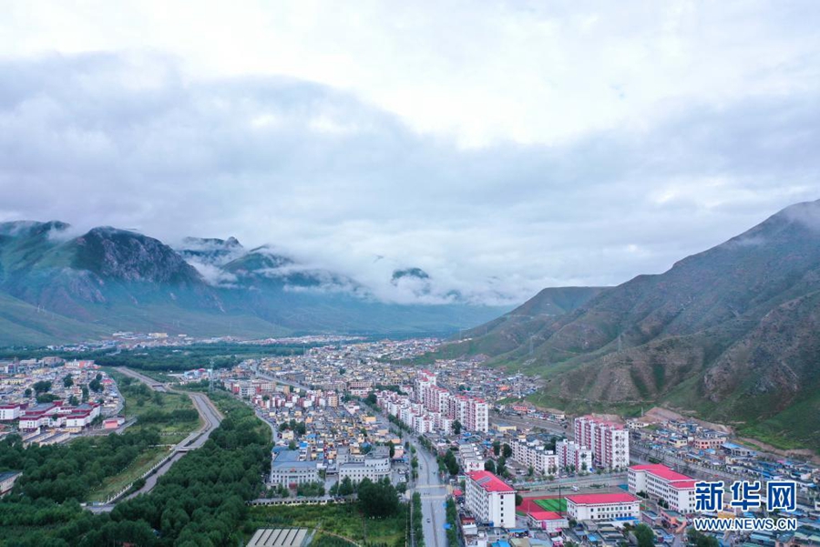這是2021年8月7日拍攝的玉樹市城區(qū)(無人機(jī)照片)。新華社記者 吳剛 攝
