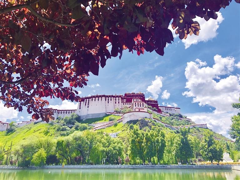 拉薩的夏天有獨(dú)特的風(fēng)格和別致的風(fēng)姿。天空藍(lán)得自帶“美顏”、白云仿佛“觸手可及”、日光耀眼奪目,還有那與夏天不匹配的溫度。拉薩的“熱”很獨(dú)特,站在陽光下有夏天的味道,出汗的時候去往樹蔭乘涼,又有一絲秋天的涼意。