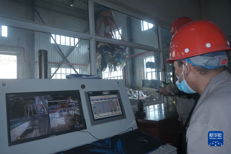 6月16日,門源縣泉口鎮(zhèn)生活垃圾高溫熱解處理站的工作人員正在忙碌。新華社記者 周盛盛 攝