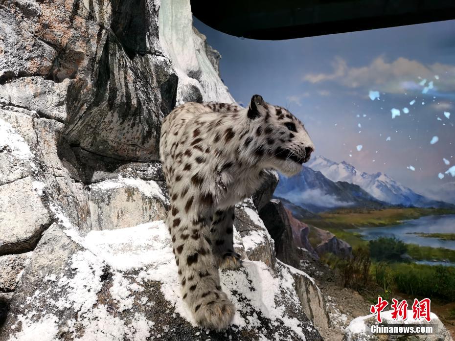 日前,中新網(wǎng)記者實地探訪即將落成的祁連山國家公園(青海片區(qū))生態(tài)科普館。正在進入建設收尾階段的該館是祁連山國家公園青海片區(qū)唯一一個以國家公園為主題的自然類科普館,包含巍巍祁連、中國濕島、多彩生命、歷史使命、影院、文創(chuàng)教學區(qū)等六個展區(qū),充分展示祁連山國家公園自然生態(tài)系統(tǒng)、珍稀動植物多樣性、生態(tài)文化等內(nèi)容。圖為“雪山之王”雪豹模型。 張?zhí)砀?攝